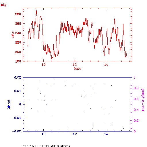 round trip delay times for string as the stratum 0 source from each of the machines. The large ( up